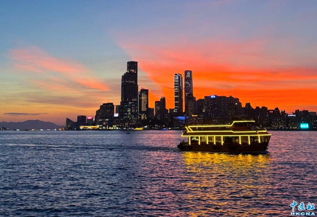 7月16日,香港連日酷熱,黃昏下的維港景色宜人。 香港中通社圖片