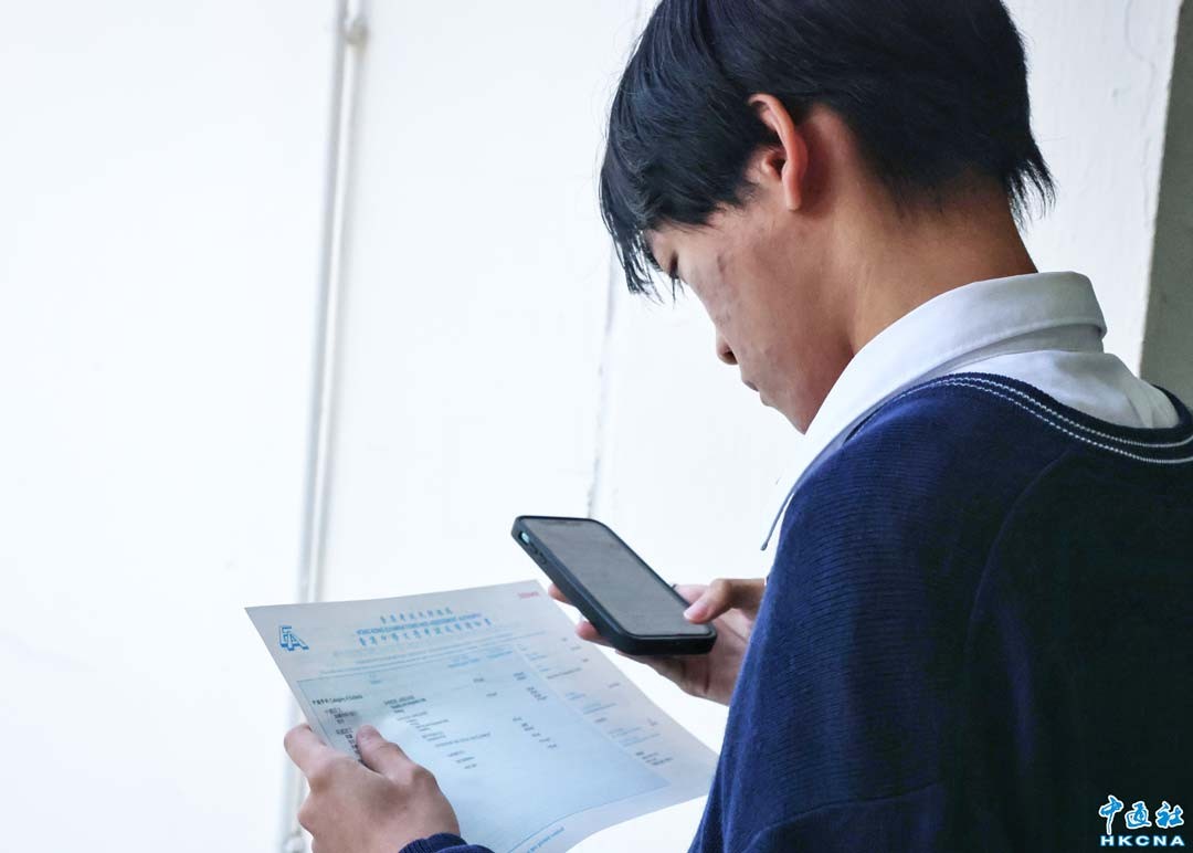 7月16日,2025年香港中學文憑試(DSE)正式放榜。本屆共誕生16名狀元,人數創歷屆新高。圖為學生在查看成績。(香港中通社記者 謝光磊攝)