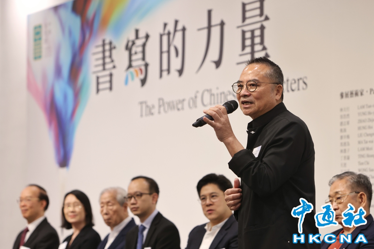 當天,多位主禮嘉賓及藝術家出席開幕典禮,為展覽揭開序幕。港區全國人大代表、立法會議員、香港文聯會長馬逢國先生致歡迎辭時表示:“國家‘十四五’規劃明確支持香港發展成為中外文化藝術交流中心,這為香港文化界提供了寶貴的發展機遇。香港文聯將持續發揮橋樑作用,一方面培育本地藝術人才,另一方面深化與內地及國際的文化合作,推動中華文化走向世界。我們深信,透過藝術交流與對話,不僅能提升香港的國際影響力,更能為國家的文化發展作出積極貢獻。” 中國民間文藝家協會香港會員分會主席鄭培凱教授表示:“漢字在人類文明的發展中,獨樹一幟,有別於其他文化傳統的拼音文字,為中華民族的長遠發展提供了重要的凝聚力。漢字書寫的演變,從甲骨文、金文到篆、隸、草、楷、行各種書體,除了書寫的實用功能之外,逐漸發展成筆墨藝術,擴大了書寫的審美空間,既是表達思想感情的文字媒介,也是視覺想像在各種材質上的創意揮灑。中國書畫藝術,在最核心的創作意念上,浸潤了中華文化傳統的精神,款曲互通。”