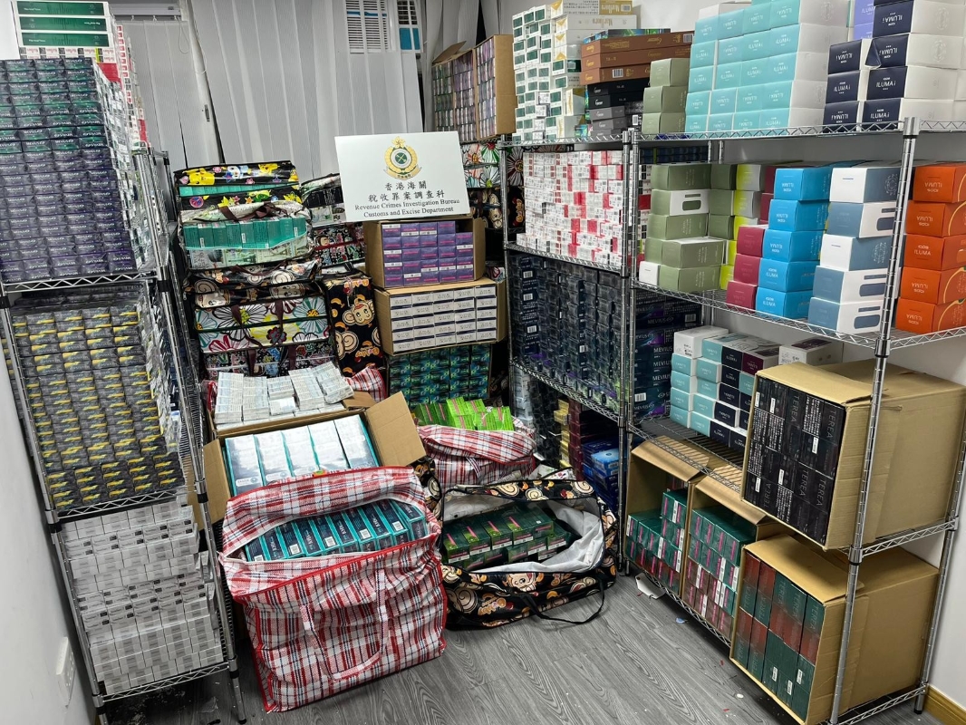 圖示一個懷疑私煙及另類吸煙產品貯存倉庫及部分檢獲的懷疑私煙及另類吸煙產品。香港海關 海關人員24日下午在新蒲崗進行反私煙行動,在六合街一座工業大廈內截查一名可疑男子,於其手推車上檢獲約一萬支懷疑另類吸煙產品,遂拘捕該名報稱建築工人的20歲男子。其後,海關人員押解他到該工廈內的兩個單位進行搜查,並再檢獲約65萬支懷疑私煙及約71萬支懷疑另類吸煙產品。 經初步調查,海關相信檢獲的私煙及另類吸煙產品主要以電話訂購方式供應東九龍一帶。案件仍在調查中,不排除有更多人被捕。 海關自7月初起,在全港各區展開代號“迅雷”的執法行動,打擊電話訂購私煙活動,包括私煙貯存倉庫、零售黑點及街頭販賣。海關會繼續根據風險評估和情報分析從源頭堵截,並透過針對貯存及分銷販賣多管齊下的執法策略,致力打擊私煙活動。 海關強調買賣私煙同屬違法。根據《應課稅品條例》,任何人若處理、管有、售賣或購買私煙即屬違法,一經定罪,最高可被判罰款100萬港元及監禁2年。(完) 【編輯:梁嘉軒】
