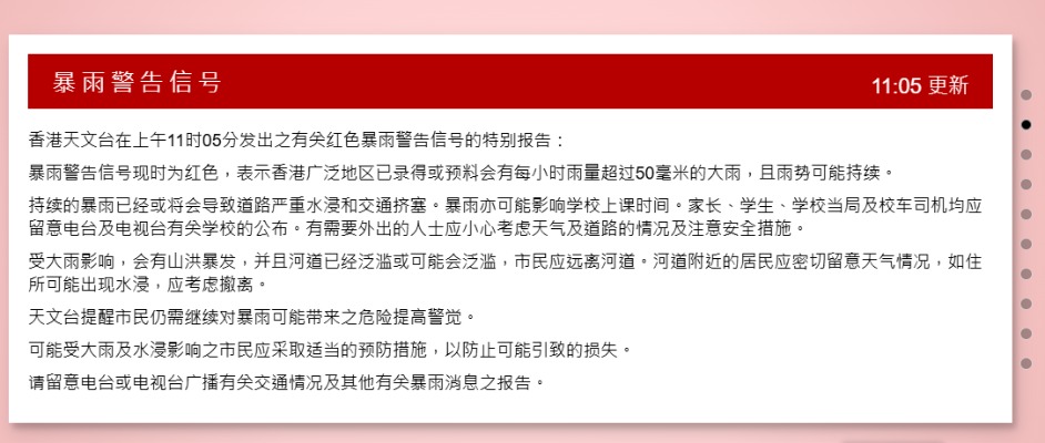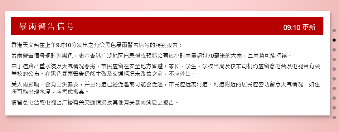 香港天文台早上9時10分改發黑色暴雨警告信號分享到: