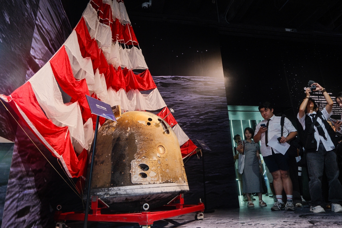 圖為嫦娥六號返回艙和降落傘實物