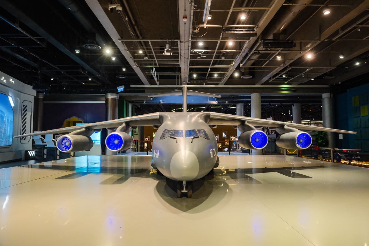 圖為一比八、翼展約6米的“運-20”大型運輸機模型