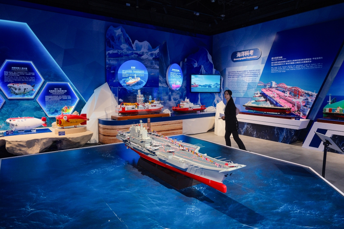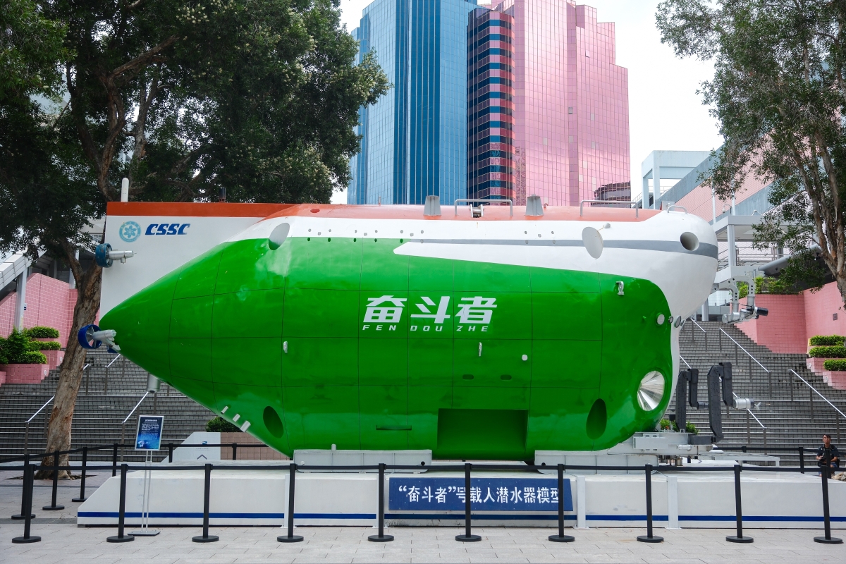 圖為實物原大、長約10米的“奮鬥者號”全海深載人潛水器模型 【編輯:洪少葵】