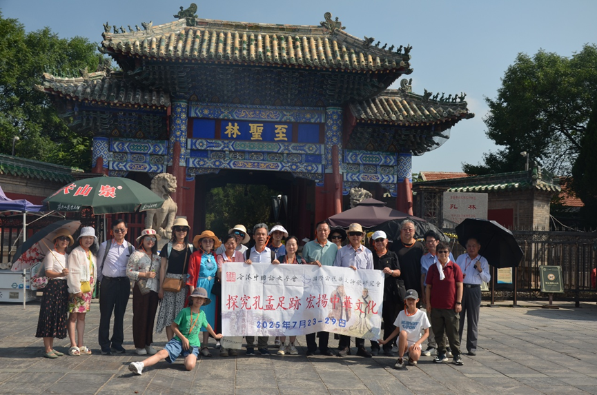 考察團亦參觀了“三孔”、孔子博物館、孟府、孟廟和尼山聖境。在孔林,成員們祭拜了孔子墓。入孔廟,沿著中軸線,依次參觀欞星門、聖時門、弘道門、大中門、同文門等建築,陶醉於每一處古跡背後的歷史故事與文化內涵。在孔府觀賞宏偉的建築和精美的木雕、石雕、磚雕,了解孔氏家族在傳承儒家文化方面所發揮的重要作用。孔子博物館收藏70萬件 珍貴文物,鎮館之寶是《明版彩繪孔子聖跡圖》和“商周十供”,成員嘆為觀止。其後參觀中國現存規模較大、保存較完整的衙署與宅第合一的古建築群孟府和古樹參天、碑刻林立的孟廟,其中傳說因康熙年間地震形成的“天震井”,都讓成員感到歷史的厚重。在尼山聖境,成員了解到儒家文化精髓。