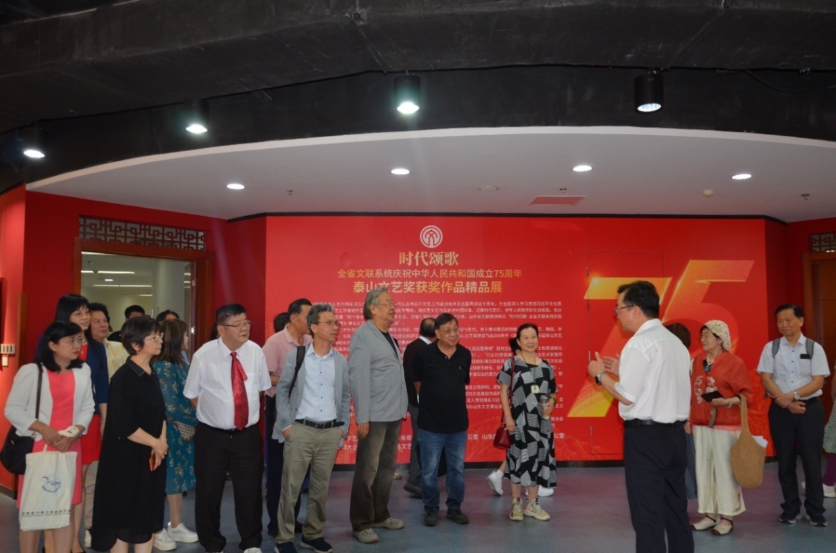 考察團首先拜訪了山東省文學藝術界聯合會。山東省文聯副主席何思清先生、姜慧女士會見文旅考察團團長沙浪先生和杜若鴻博士一行。何思清介紹了山東省文學藝術事業發展和山東省文聯的基本情況。沙浪介紹了詩歌研究會在藝術上海納百川,在政治上支持“一國兩制”,近年舉辦了兩屆“國際漢詩杯”詩歌比賽。杜若鴻介紹了語文學會出版的期刊《語文建設(香港)》和《文學論衡》,在學術層面上推廣中華文化。山東省文聯辦公室主任馬宗前、組織聯絡部主任喬新江、山東省曲藝家協會主席慈建國、山東省文藝評論家協會副主席兼秘書長王之明、山東省文藝創作研究院院長王宇鵬參加會見。
