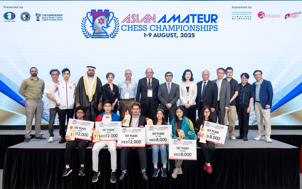 亞洲國際象棋業餘錦標賽來到第15屆,今年首次由香港舉辦,吸引了近30個國家及地區超過400名優秀業餘棋手參與,人數打破歷屆紀錄。經一連七天的對戰,U2300公開組及女子組的冠軍分別由蒙古的國際棋聯大師(FIDE Master) Khishigbat Ulziikhishig及哈薩克斯坦的女子候選大師(Woman Candidate Master)Kristina Kim奪得,U2000公開組及女子組的冠軍分別由菲律賓的Jan Clifford Labog及蒙古的Enkhsaikhan Odmaa獲得,U1700公開組及女子組的冠軍都由來自菲律賓的Paul Christian Barroga及Yana Emilou De Vera奪得。 中國及中國香港也在本次比賽上獲得不錯的成績。中國的2面銀牌分別由U2300女子組的女子國際棋聯大師(Woman FIDE Master)李欣玙及U2000公開組的徐巍奪得。香港方面,候選大師(Candidate Master) 高家瀚在U2300公開組榮獲第5名,夏雪静在U2300女子組榮獲第8名,黃晶及盧灝津分別在U1700女子組及公開組獲得第4名及第9名。 今年正值總會創立第 65 周年,恰逢香港回歸28年,為了紀念這一歷史時刻,大會特設“慶回歸盃”,以表彰在本次比賽中表現最傑出的香港棋手。本次慶回歸盃由男棋手候選大師(Candidate Master) 高家瀚及女棋手夏雪静獲得。高家瀚表示,雖然在比賽前期受身體狀況影響未能完全發揮實力,但憑借最後三局的出色表現,讓他最終在競爭激烈的U2300公開組中斬獲第五名,這次錦標賽也為他增加了13個積分,離2100的分數更進一步。夏雪静提及,獲得香港最傑出女棋手的稱號是對她多年努力的肯定,她更特別提及整個賽事的安排讓她的體驗相當良好,香港的整體辦賽水平越來越高質。 中國香港國際象棋總會榮譽會長高鼎國表示:“籌備更多國際賽事是培養本地人才的關鍵,總會在近年亦持續推動多項錦標賽,為本地棋手提供高水平賽事平台,本次亞洲國際象棋業餘錦標賽亦為備戰全運會的運動員提供訓練機會。我們在12月亦會舉辦香港國際象棋世界公開賽,進一步推動本地國際象棋運動發展。” (完) 【編輯:譚暢】