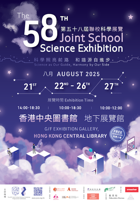 是次聯校科學展(Joint School Science Exhibition, J.S.S.E.)以“和諧”作為年度主題, 實踐“科學照亮前路,和諧源自進步”。今屆展覽匯聚本地中學生的科研結晶,聚焦如何以科學力量,療癒都市精神壓力、促進跨代文化共融、重建人與自然關係,將天馬行空的創意轉化為觸手可及的和諧方案,為香港社會的可持續發展帶來新思維。 “第五十八屆聯校科學展 ”將於2025年8月21日至8月27日假香港中央圖書館展覽館舉行,並免費開放予公眾參觀,逾23間中學參展,並一連七天供大家投票選出最喜愛的項目。同場還將舉辦“Kids Bond”、互動科學劇場及親子工作坊,讓家長與子女一同親手製作“麥克斯韋滾輪”(Maxwell Wheel),從遊戲中輕鬆學習位能與動能轉換的能量守恆定律,寓教於樂,讓一家大細在暑假中以輕鬆愉快的氛圍,體驗科學的奧妙,激發小朋友的創意思維! (完) 【編輯:譚暢】