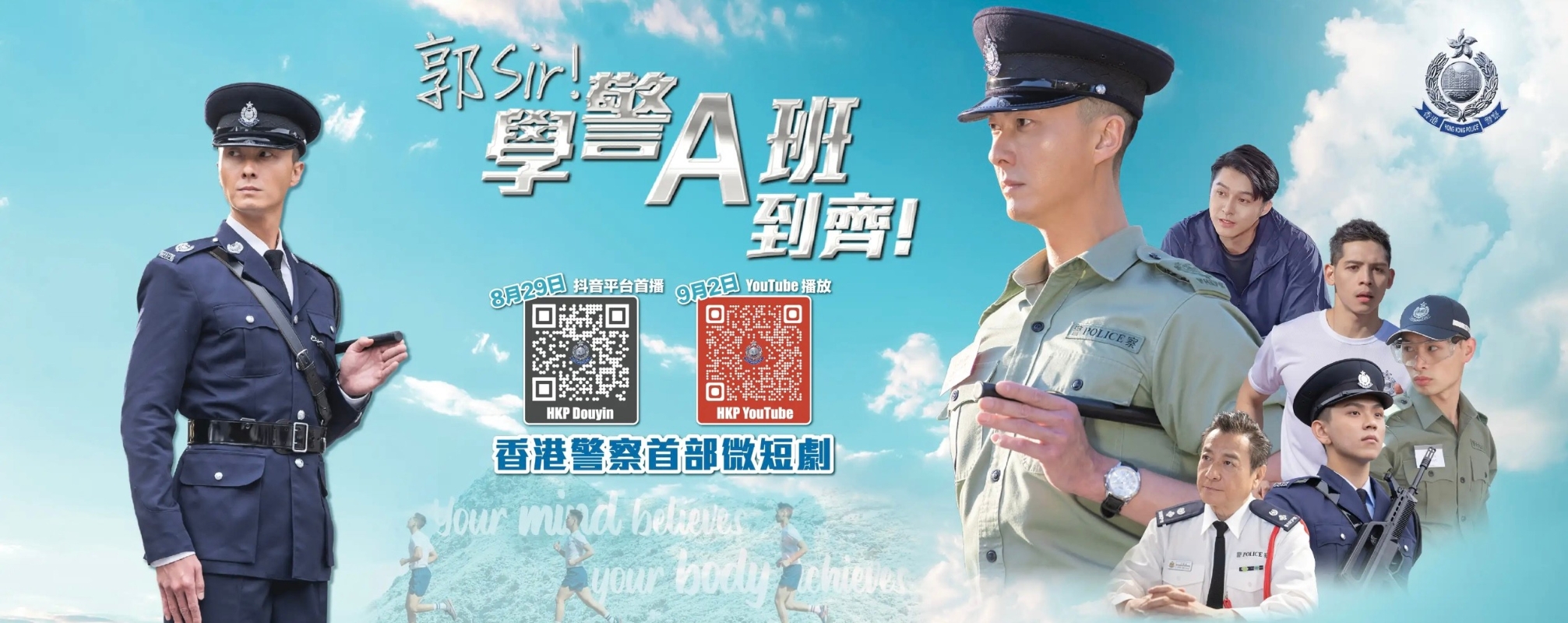 香港新聞網8月29日電 香港警務處近年在宣傳方面屢有創新,29日推出首部香港警察微短劇《郭Sir!學警A班到齊!》 ,在香港警察總部舉行首映會。 這套微短劇共25集,每集長度約3分鐘,主要在黃竹坑警察學院實地取景拍攝。劇中,由香港演員王浩信飾演的神探警署警長郭浩(郭Sir)調任至警察訓練學院,成為學警A班的教官。A 班學警們的成長背景各有不同,性格鮮明,郭Sir與他們共同克服訓練中的挑戰,見證他們的成長與蛻變。