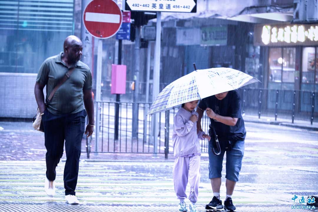 9月8日早上,香港市民在八號東南烈風或暴風信號生效下出行。教育局宣佈,所有日校當日停課,包括中學、小學、特殊學校、幼兒園及幼兒園暨幼兒中心。(香港中通社記者 洪少葵攝)