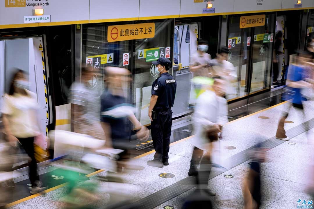 中國中央政法委秘書長訚柏12日介紹,“十四五”(第十四個五年計劃,2021-2025年)期間,法治中國建設取得突破性進展,為經濟快速發展和社會長期穩定提供保障。中國被公認為全球最安全國家之一,去年刑事案件立案數同比下降25.7%。圖為市民在深圳崗夏北地鐵站出行。 (香港中通社記者 徐文峰攝)