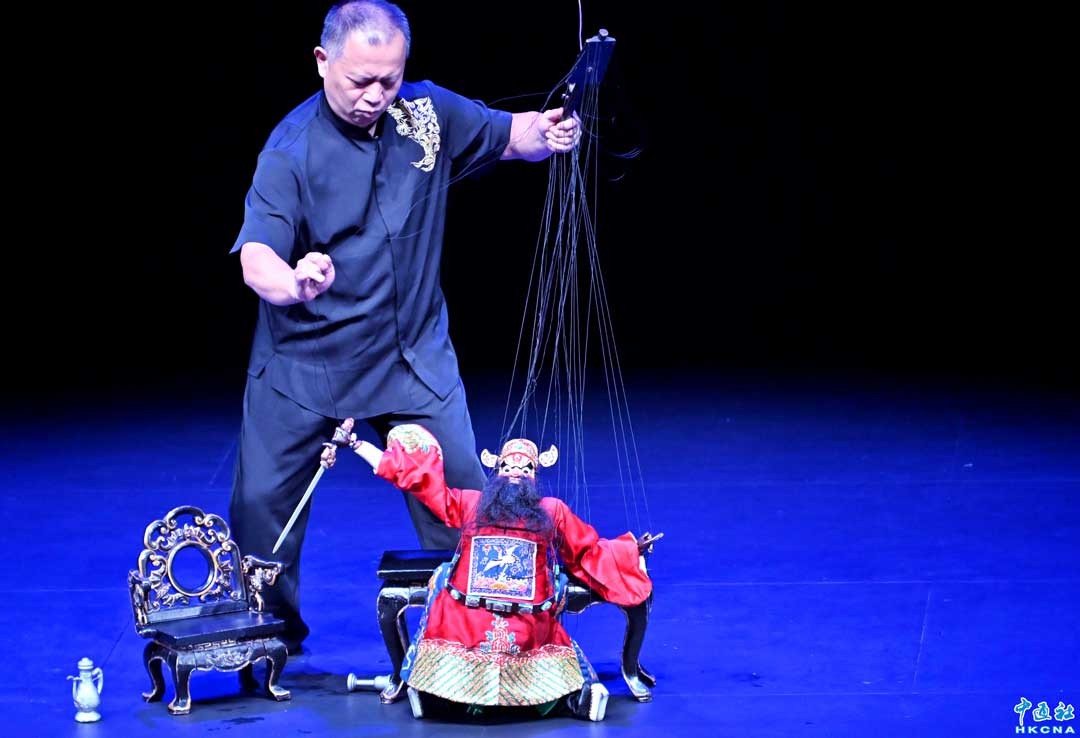 9月12日,香港康文署“中華文化節2025”在西灣河文娛中心劇院舉辦“普及中華文化藝術專場”。超過300名中小學師生獲邀免費欣賞由泉州市提線木偶戲傳承保護中心帶來的《古藝新姿木偶戲》演出,感受這項國家級非物質文化遺產的獨特魅力。圖為《古藝新姿木偶戲》中的小戲《鍾馗醉酒》展現閩南民俗千年技藝。(香港中通社記者 洪少葵攝)