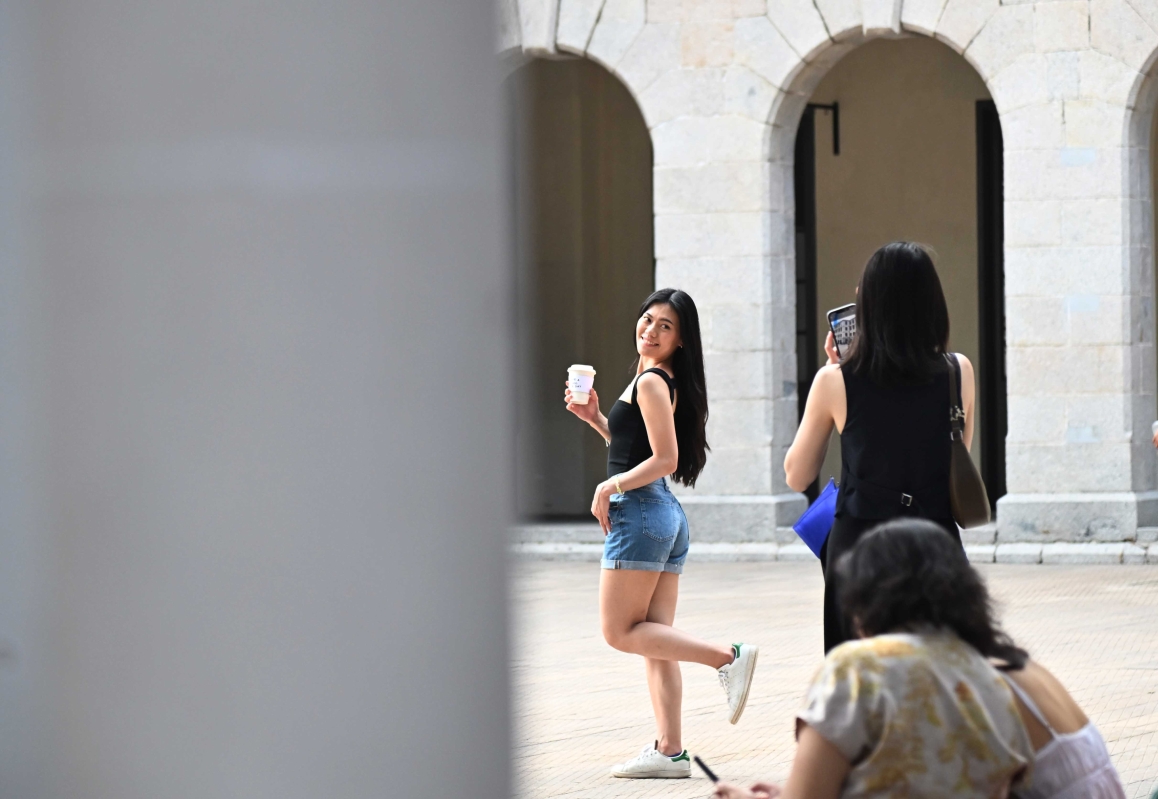 在“大館”拍照的遊客。