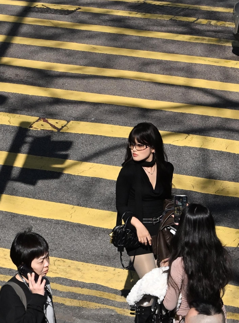 遊客街頭打卡留影。 【編輯:洪少葵】