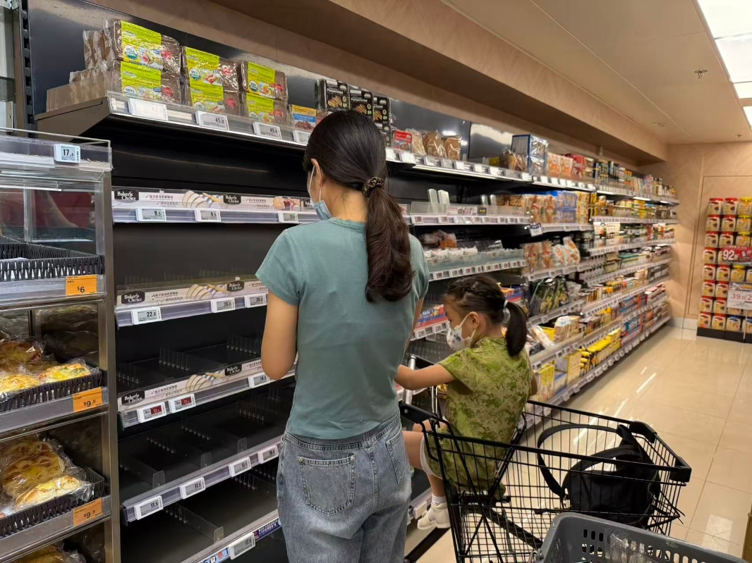 市民楊先生指,港島物資相對九龍更多,自己在尖沙咀的惠康超市香蕉都已經買不到了,但在港島的超市都還比較充裕。 位於灣仔的Taste在中午12點左右人流有所增加,市民在進行最後的“囤貨”。記者觀察到,新鮮面包牛奶類食品、速凍水餃、肉脯類零食、新鮮肉類幾乎都已售罄。店員對記者表示,一些貨品還沒有收到貨源可以供貨,暫時只能空架。