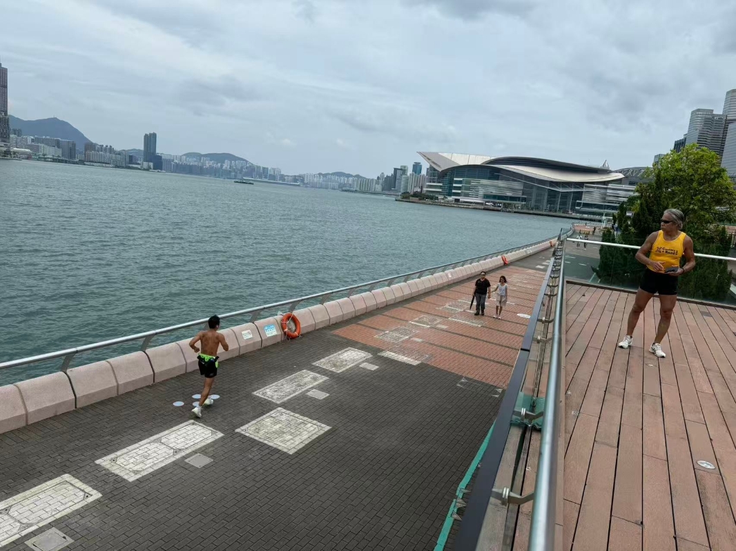 在會展海濱,仍有不少市民趁颱風到來之前跑步鍛煉。(完)