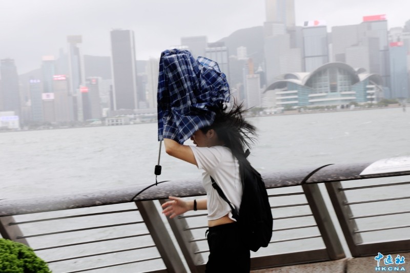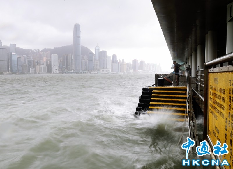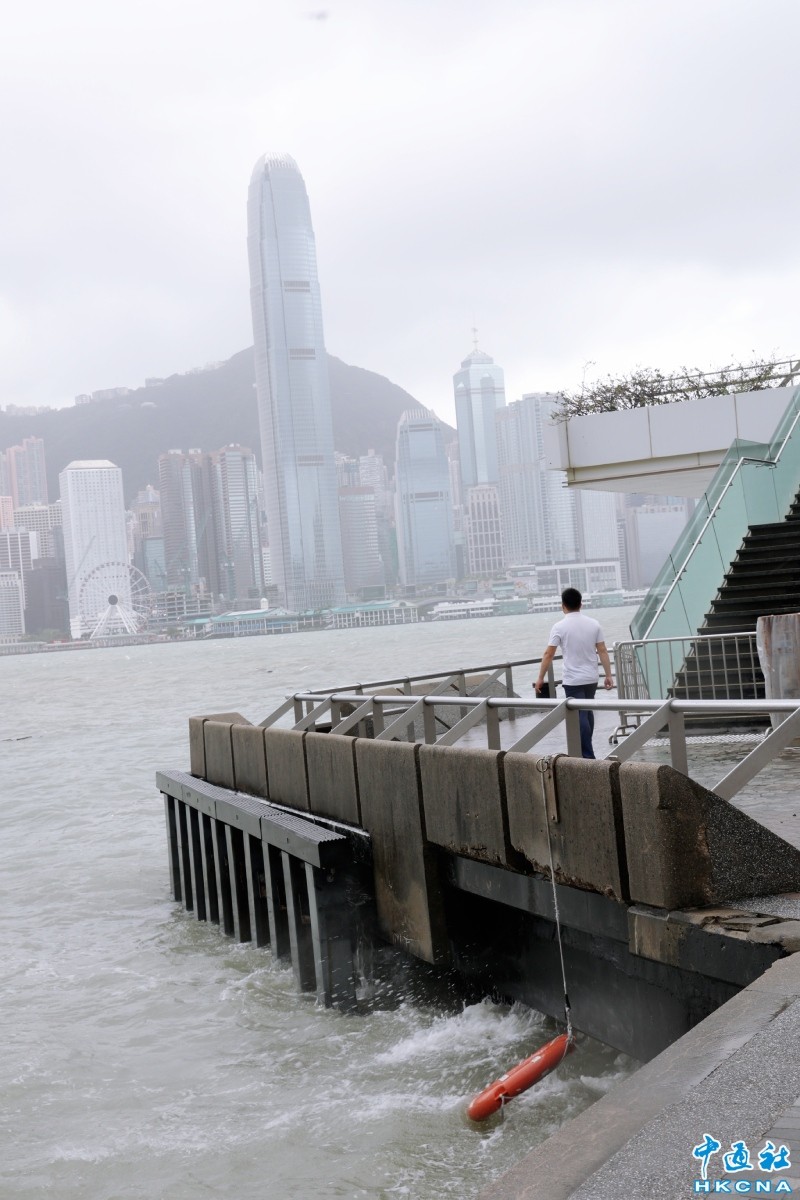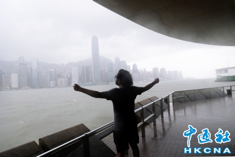 香港新聞網9月24日電(記者 徐文峰)9月24日,香港天文台下午1時20分改發八號風球,超強颱風“樺加沙”正逐漸遠離香港。 尖沙咀海傍,海浪拍打岸邊,有民眾不畏風浪在海傍追風逐浪。 超強颱風“樺加沙”吹襲香港,天文台在凌晨2時40分發出十號颱風信號,平了1964年需要於同年兩度發出十號信號的紀錄。“樺加沙”風暴在24日早最接近香港,在香港以南約120公里掠過,是1946年以來距離香港最遠的十號信號,“樺加沙”的中心風力高達每小時195公里,比2018年“山竹”的每小時175公里更高。