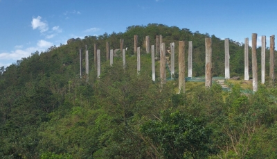 “心經簡林”於2005年落成,是全球最大的戶外木刻佛經簡群,由38根木柱,以∞型排列組成,寓意“無限”。其中37根木柱雕刻了饒教授的大字《心經》書法,最高的一根木柱則留白,象徵《心經》中“空”的思想。“心經簡林”與大眾分享大乘佛教核心經典中的慈悲與智慧,不啻是個集“真、善、美”於一身、非常獨特的人文勝境。