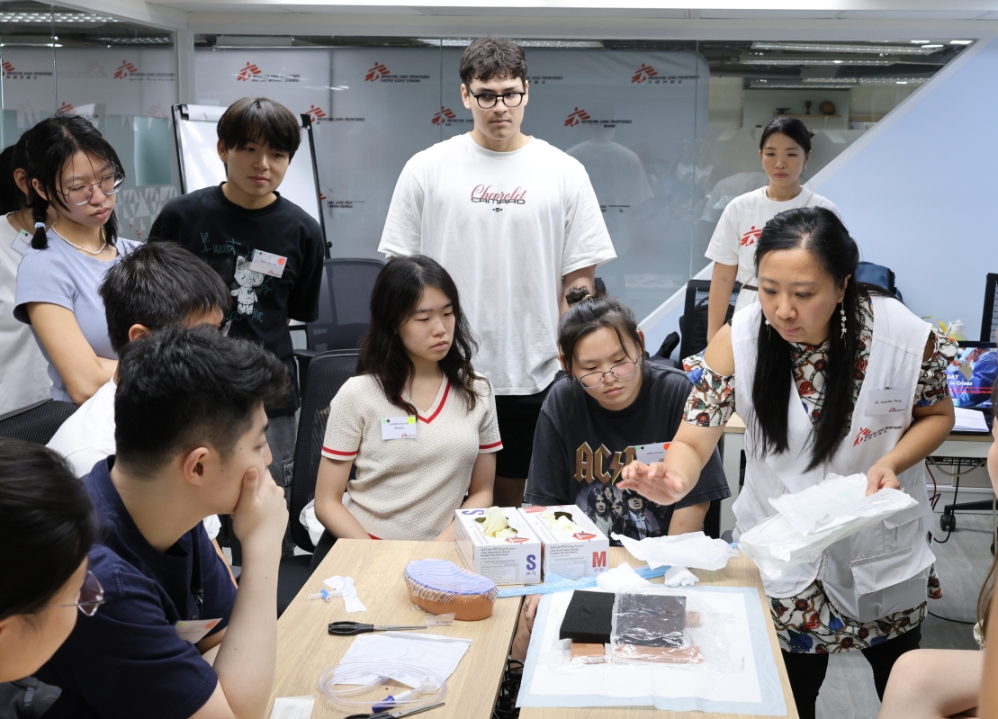 無國界醫生舉辦體驗日 逾60名香港醫護學生了解“危機中的戰傷”香港新聞網10月9日電 無國界醫生(香港)於上周六(4日)在香港辦事處舉辦“無國界醫生體驗日:危機中的戰傷”工作坊,是次活動與香港亞洲醫學生學生會合作,吸引了65名於香港就讀醫科或護理學的大學一年級至三年級學生參與。工作坊旨在讓醫護學生了解組織在衝突地區提供醫療護理的挑戰,並認識救援人員如何在資源匱乏的環境中,靈活應對各種緊急醫療情況。 工作坊由四位來自香港、具備前線經驗的救援人員帶領,包括護士趙卓邦、骨科醫生唐頴思、深切治療科醫生陶巧敏及麻醉科醫生吳少彬。四名講者在分組環節中,展示如何在前線救援時靈活變通,運用當地僅有的簡單工具應對複雜的醫療需求,包括自製胸腔引流瓶、運用不同的麻醉針頭以達致最佳的治療效果、以塑膠軟袋暫時包裹外露腸臟,以及模擬出現空襲或爆炸等大規模傷亡事故後分流程序。