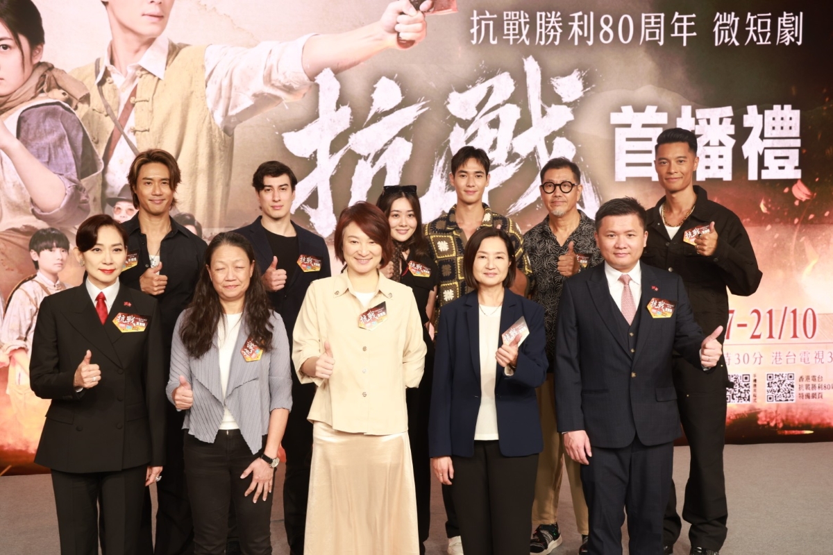 香港新聞網10月17日電( 鄧梓傑 圖文)10月17日,《抗戰》首播禮在香港電台錄影廠舉行。“憲法和基本法推廣督導委員會”轄下的“愛國主義教育工作小組”組長李慧琼博士、廣播處長關婉儀、政府新聞處處長廖李可期,以及工作小組委員李子樹博士和鄺美雲出席。首播禮上播放了《抗戰》精華片段,劇中演員亦出席分享拍攝感受。今年是中國人民抗日戰爭暨世界反法西斯戰爭勝利80周年(抗戰勝利80周年),香港特區政府新聞處聯同香港電台製作紀念抗戰勝利80周年的微短劇《抗戰》,讓市民可以更了解祖國和香港的抗戰歷史,提升愛國精神和凝聚家國情懷。《抗戰》由10月17日起一連五晚於9時30分在港台電視31播出。