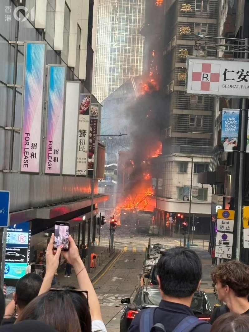 香港新聞網10月18日電 香港中環華懋大廈後巷一處施工棚架發生火災。據報,大廈升降機內有人遭火勢圍困;鄰近便利店內傳出求救訊息,多人因濃煙封鎖出口而受困。