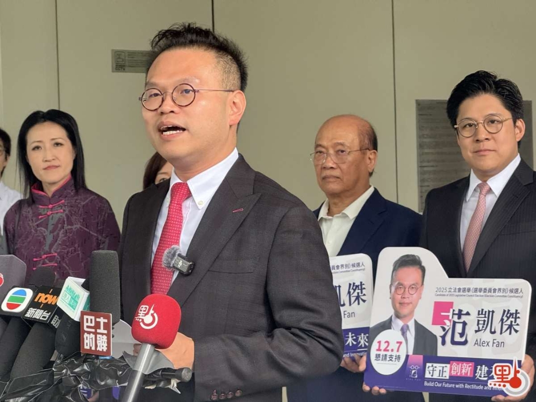 葉子建(圖源:點新聞) 執業大律師、海南國際仲裁院院長范凱傑亦宣布參選選委會界別。范凱傑介紹,過去十多年來,他憑藉法律專業背景服務多個公共機構,包括青年發展委員會、香港藝術發展局、旅遊業監管局等,這些經歷讓其深刻體會到,法律視角在公共政策制定與落實過程中至關重要。他續指,近年來在海南國際仲裁院的工作經驗亦極為寶貴,使其能夠從國家發展角度審視香港未來,更有力守護香港核心價值,期望以創新思維推動經濟多元發展。