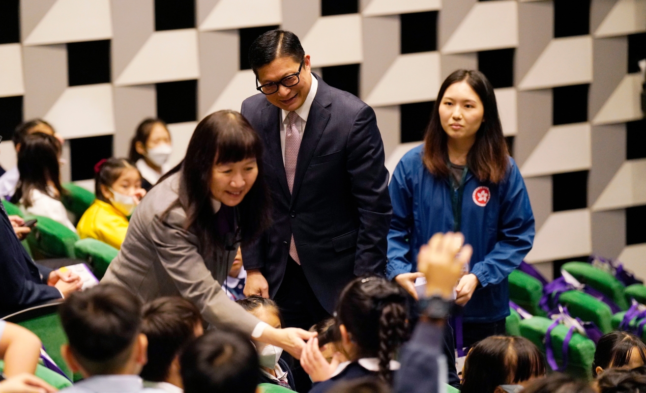 保安局局長鄧炳強和教育局局長蔡若蓮博士共同啟動《校園食神大賽》互動劇場