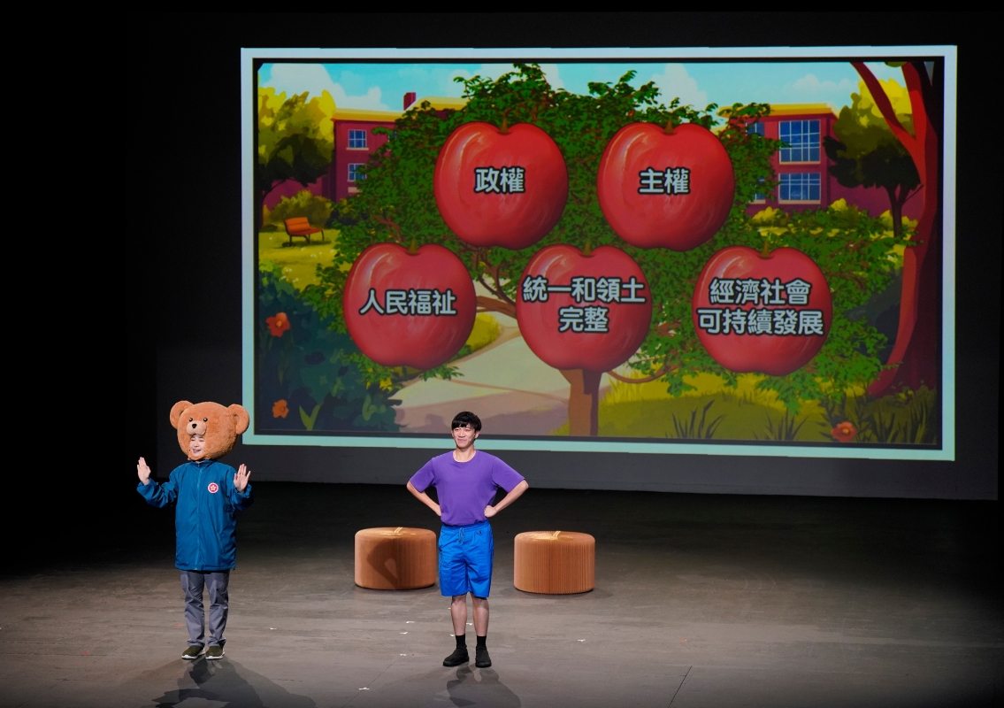 香港新聞網11月11日電(陳奕啟圖文)11月11日,由保安局主辦的國家安全校園互動劇場《校園食神大賽》啓動禮在香港大會堂舉行。保安局局長鄧炳強和教育局局長蔡若蓮博士出席主禮並致辭。互動劇場於啓動禮後進行首演。