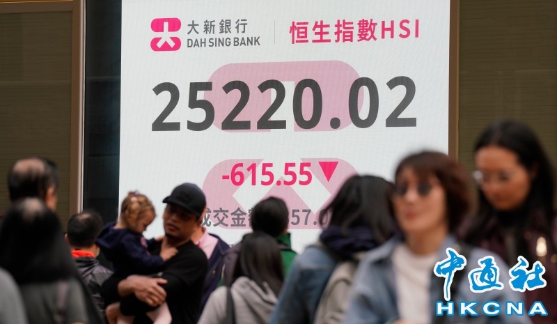 香港中通社11月21日電(記者 張明臻)美股及中國A股下跌,港股亦繼續向下尋底。恒指21日收報25220點,跌615點或2.38%;大市全日成交2857億港元。全周計,恒指累跌1352點或5.09%。