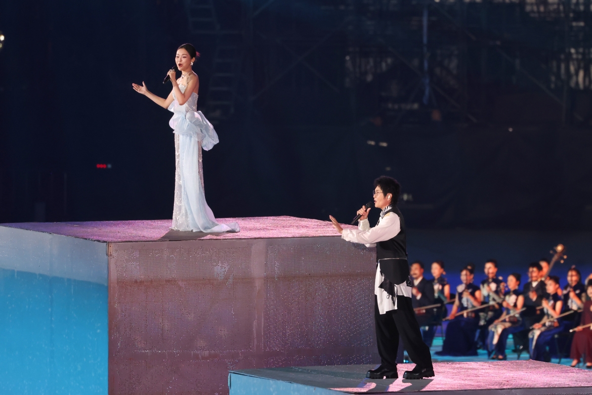 圖為孫楠演唱全運會閉幕式主題曲,一首《歡迎常到灣區來》唱出三地情。