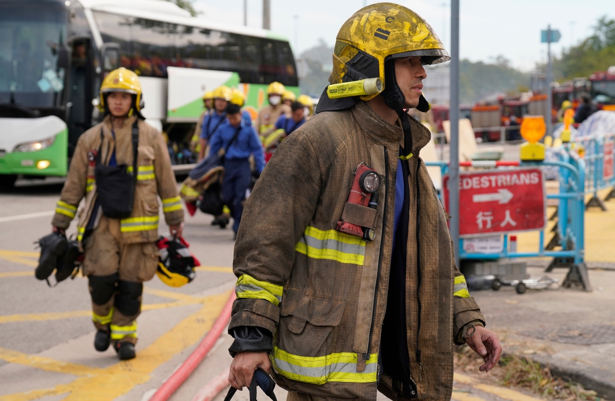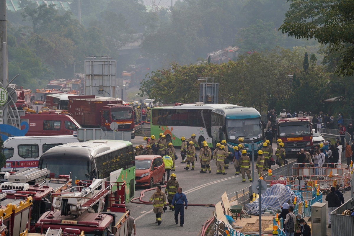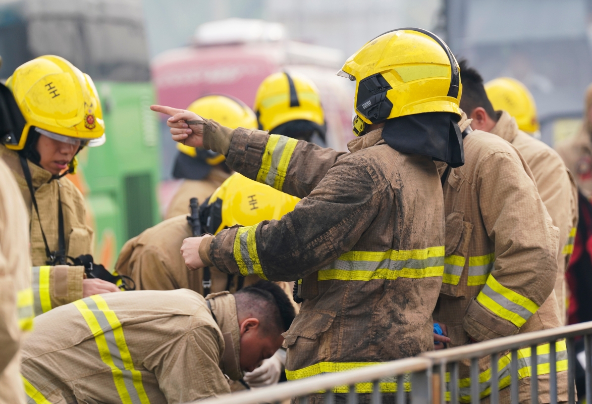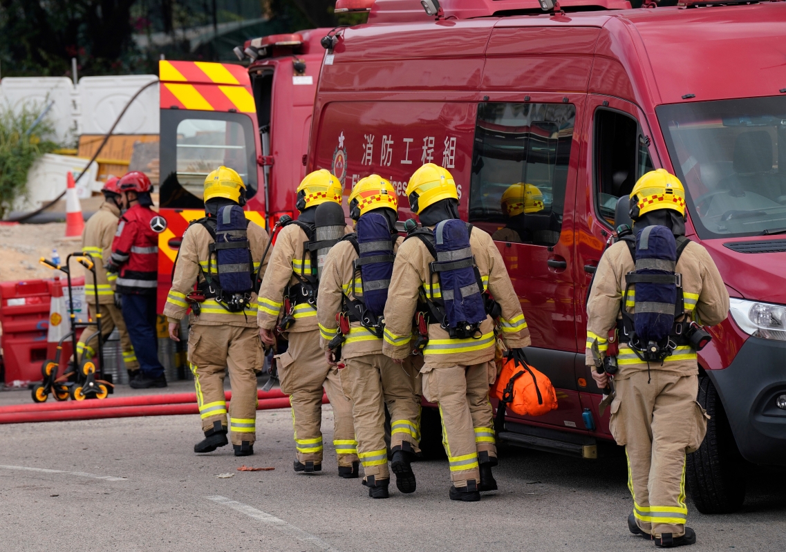 香港大埔宏福苑26日發生五級大火,至27日消防人員仍在撲滅火勢。