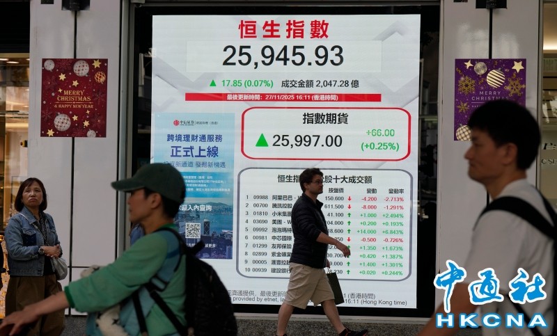 香港中通社11月27日電(記者 徐嘉儀)港股27日收市報25945點,升17點。大市成交額為2047億港元。