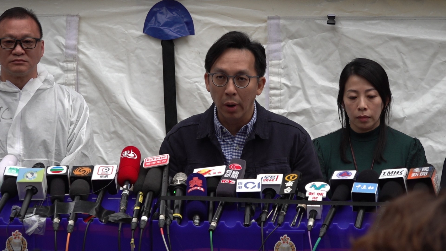 警務處災難遇害者辨認組主管鄭嘉俊(左)、警務處傷亡查詢中心主管曾淑賢公佈最新情況。