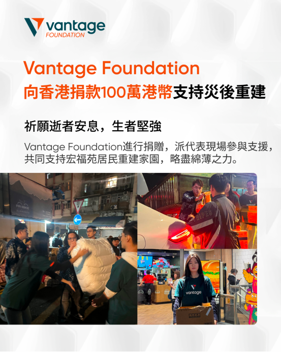 香港新聞網12月1日電 Vantage 基金會近日向香港大埔宏福苑五級火災的救援及災後重建工作捐贈 100 萬港元。此次火災對多戶家庭造成嚴重損失,居民生活受到重大影響。