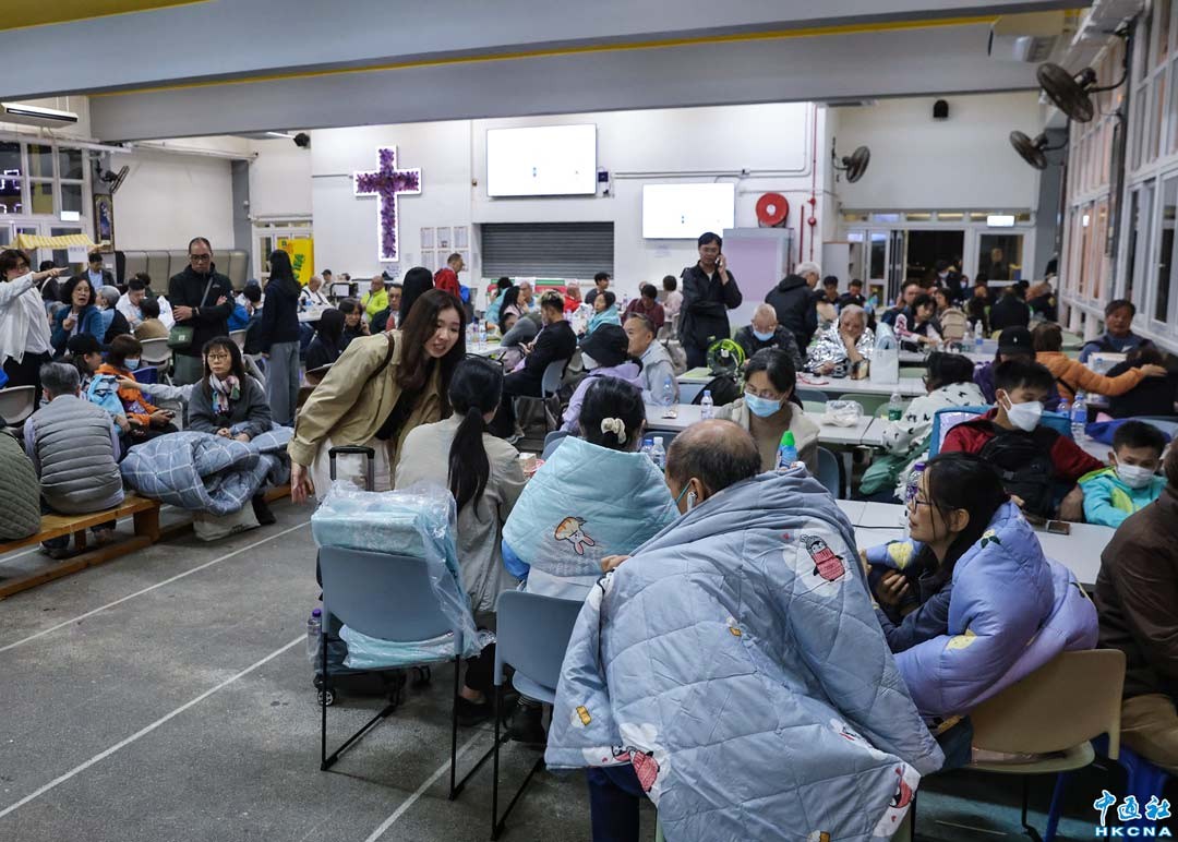 11月26日,因應大埔宏福苑火警事故,香港特區政府已開放多個臨時庇護中心和跨部門援助站,以安置疏散居民。(香港中通社記者 謝光磊 攝)