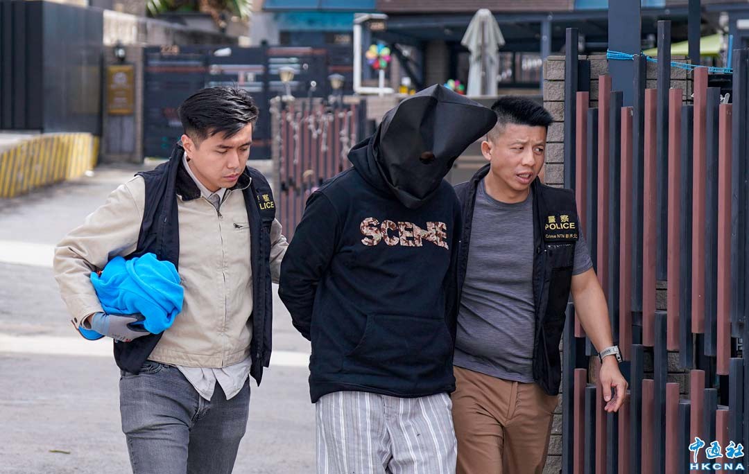 11月27日下午,香港警方就大埔火警,帶涉事相關人員到朗庸園路121號蝦尾新村搜證。26日大埔宏福苑五級火死亡人數增至44人。警方凌晨拘捕3名負責屋苑大廈維修的工程公司負責人,包括兩名董事及一名工程顧問扣查。(香港中通社 陳奕啟 攝 )