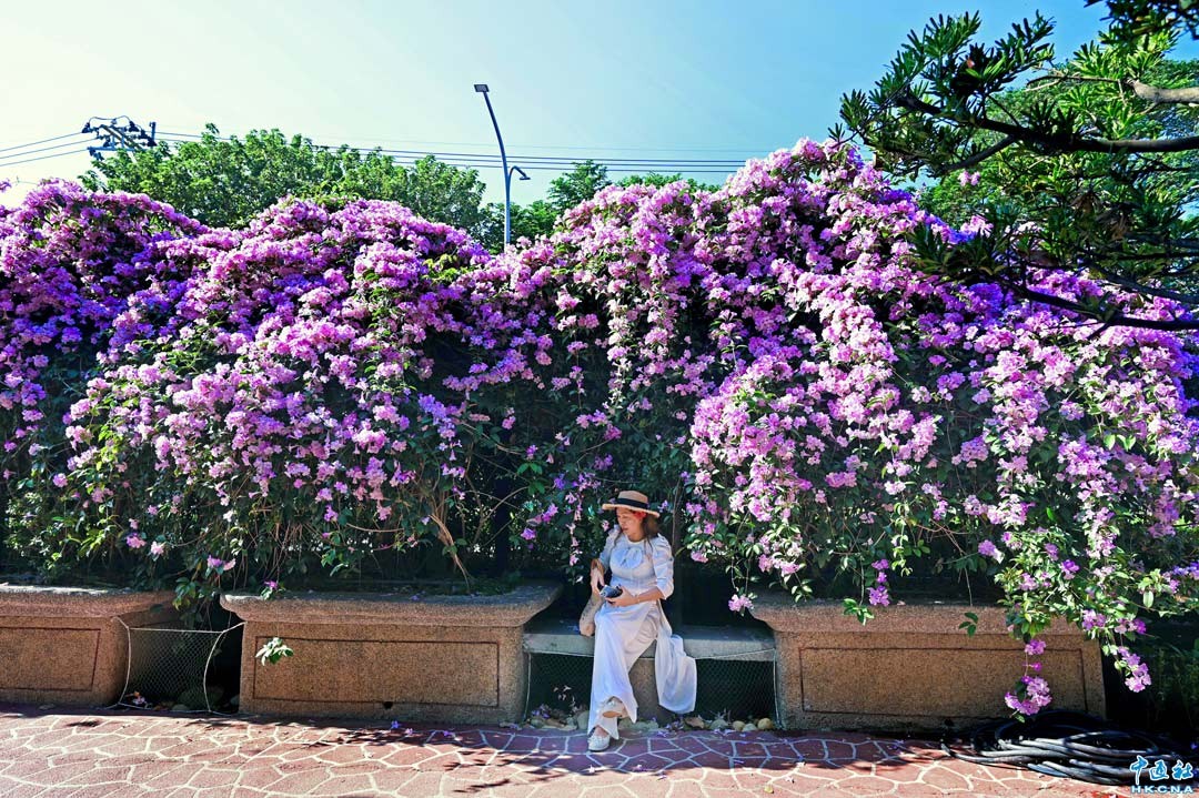 台灣新北市泰山楓樹河濱公園,目前正是蒜香藤開花季節。蒜香藤一年兩次花期,分別為春季5月及冬季11月,花期只有一周。蒜香藤的花和葉子因搓揉後有大蒜味而得名,又名張氏紫葳、紫鈴藤,具有濃郁的蒜香,可作為蒜的替代物用於烹飪。在蕭瑟的寒冬中開花的蒜香藤,為冬季注入一股清新活力,吸引民眾前往賞花拍照。 香港中通社圖片
