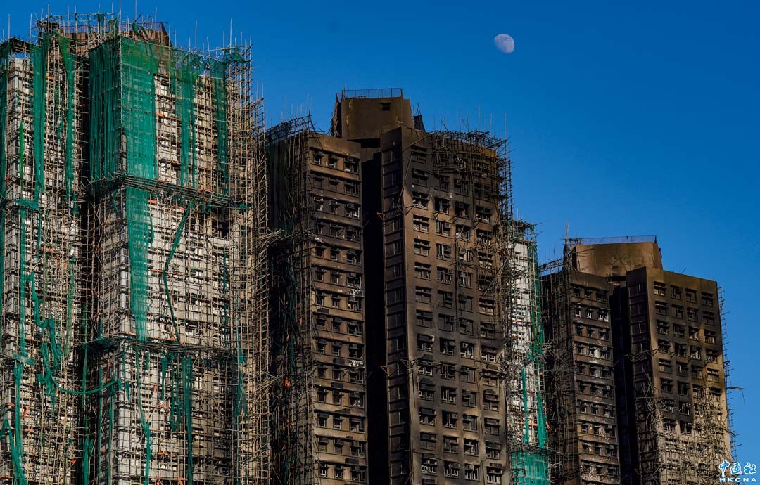 12月2日,香港大埔火災第七天,警方表示未受大火波及的宏志閣居民可於3日及4日,返回宏志閣大廈一次,取回重要個人物品。(香港中通社 陳奕啟 攝)