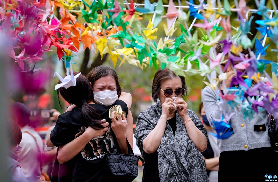 香港大埔宏福苑日前發生五級大火,造成嚴重傷亡。警方3日下午舉行記者會交代最新情況時表示,截至當天14時,最新遇難者人數升至159人,其中140具遺體已初步確認身份。圖為民眾在千紙鶴下哀悼逝者。(香港中通社 陳奕啟 攝)