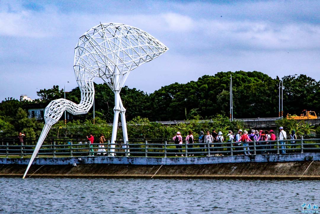 台灣桃園富岡站前的裝置藝術《富岡之窗》,和當地重要地標,高八米五的白鷺鷥低頭覓食,讓民眾感受藝術在街角綻放的靈光。站内的“富岡故事館”,設有圖書益智遊戲,還有古色古香的火車裝置藝術,提供親子遊戲,讓民眾連結鐵道與生活的美好記憶。圖為巨型白鷺鷥裝置藝術。 香港中通社圖片