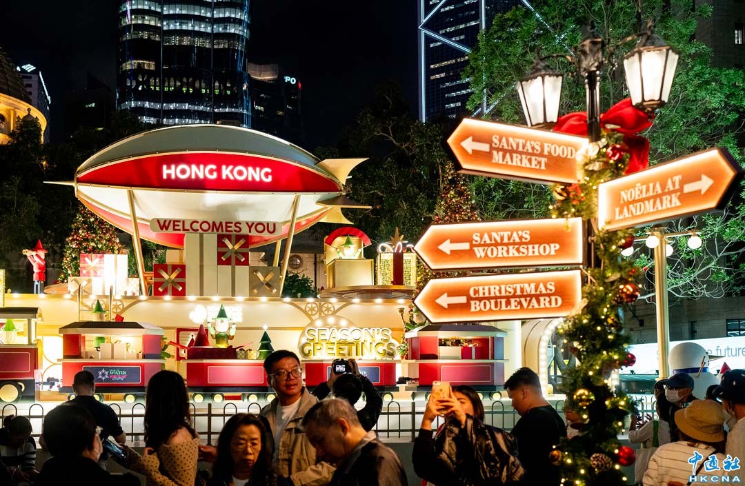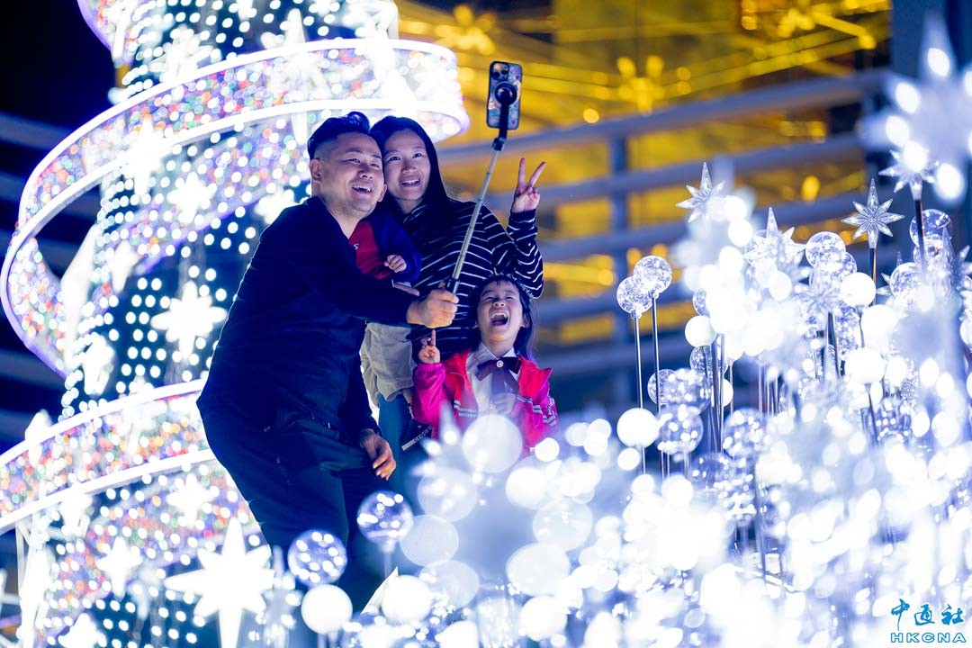 香港新聞網12月12日電(記者 陳奕啟) 12月12日,夜幕降臨,香港中環街頭亮起層層聖誕燈飾,寫字樓外的聖誕樹、行人天橋及街道兩旁的節日裝置,營造出濃厚的聖誕氣氛。市民及遊客放慢腳步,在遮打道一帶駐足觀賞,有人舉起手機拍照,有人與同伴合影留念。