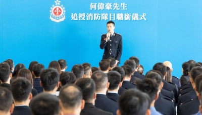 香港中通社圖片 喪禮官方儀式於上午十時開始,供政府官員、社會賢達和消防處屬員參與。儀式將不會對公眾開放,儀式後,政府官員及消防人員將列隊在殯儀館外向消防隊目何偉豪作最後致敬,市民可沿途作最後致意。 靈車車隊隨後將前往和合石墳場內的“浩園”進行安葬儀式。“浩園”是專門安葬殉職香港公務員的一幅墓地。 已故消防隊目何偉豪生於1987年,終年37歲,遺下雙親、兄長、弟弟及未婚妻。 他2016年加入消防處任職消防員。消防處回顧其生平指出,何偉豪消防隊目在消防處服務九年,工作勤奮,待人有禮,克盡職守,樂於指導年資較淺的同事,深受同袍愛戴。他多次執行滅火救援任務,充分展現其專業能幹、勤快高效和機敏善斷的優點。 何偉豪奮勇無畏、捨己為人的專業精神足為典範,將永誌香港市民心中。為表揚其向火逆行的無私奉獻精神,消防處已向何偉豪追授消防隊目榮譽職銜。(完) 【編輯:林曉惠】