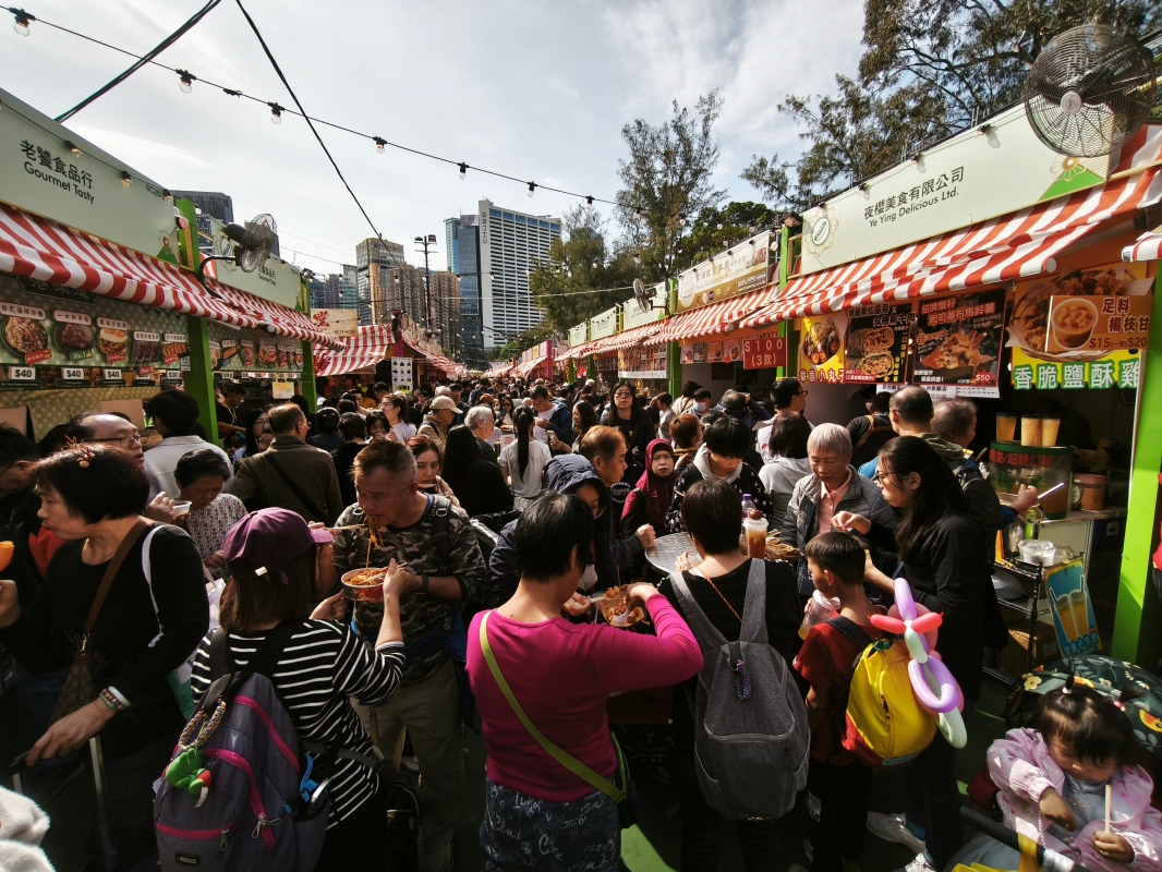 工展會熟食區水洩不通。