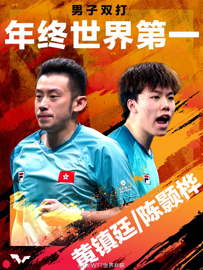 男子雙打年終世界第一:黃鎮廷/陳顥樺 圖源:WTT微博 女子雙打年終世界第一:王曼昱(中國)/蒯曼(中國)