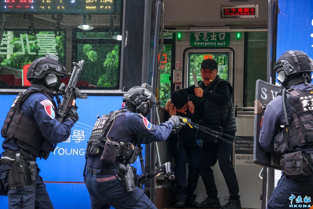 台灣新北市12月30日舉行公車行車安全與緊急應變教育訓練,演習內容包含模擬行車事故、不明人士於車外包圍、以及車內發生潛在危機等,訓練司機與相關支援單位的應變。 香港中通社圖片