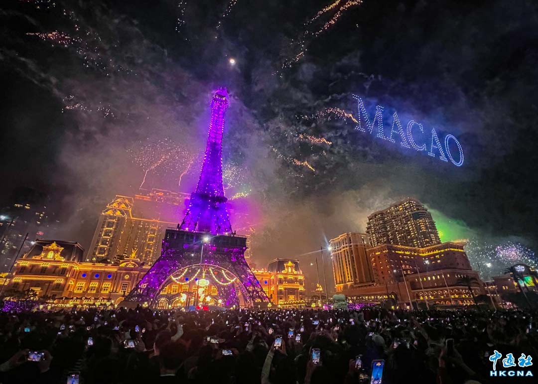 12月31日,當晚是除夕夜,澳門路氹金光大道舉行跨年煙花活動,現場不少居民旅客提早到場霸佔有利位置。香港中通社圖片