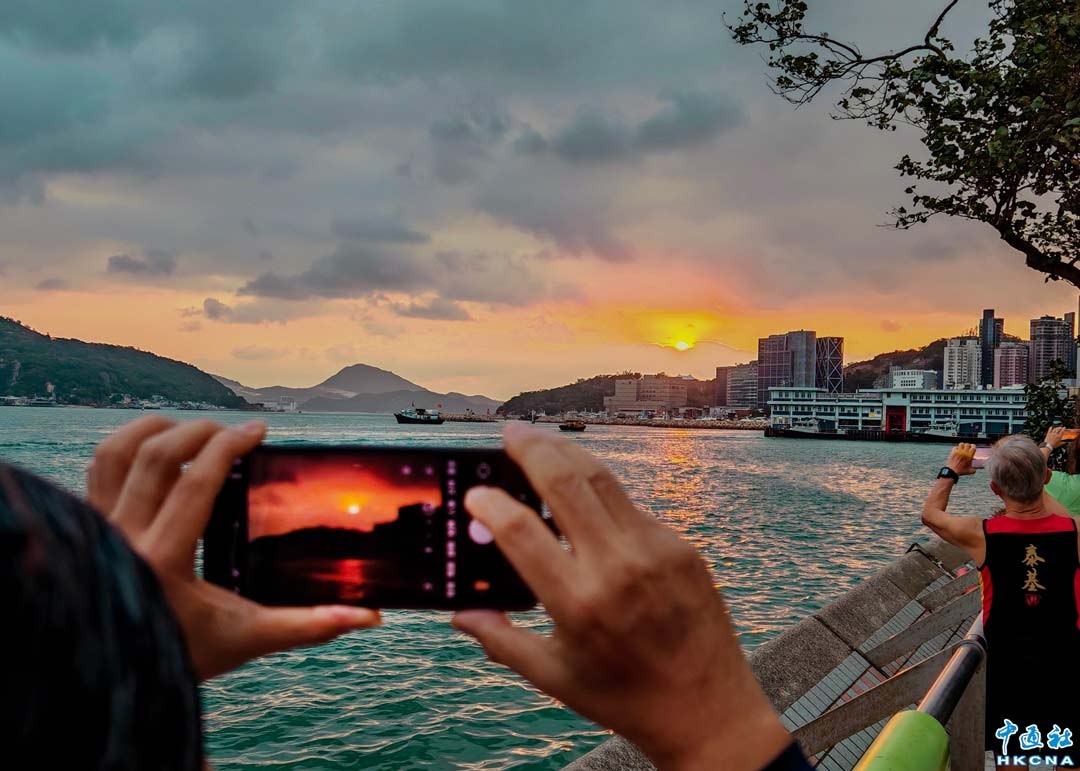 1月1日清晨,市民在香港東區海濱迎接第一縷晨光。 (香港中通社記者 洪少葵 攝)