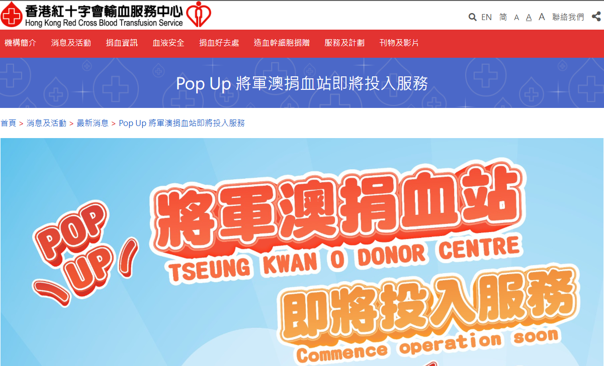 “Pop-up”將軍澳捐血站是香港紅十字會輸血服務中心於西貢區首個開設的短期捐血點。
