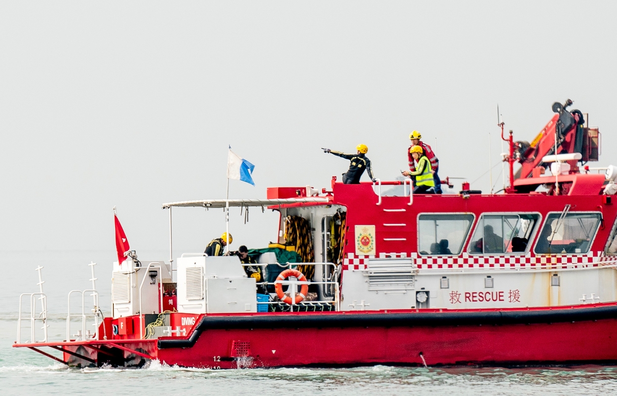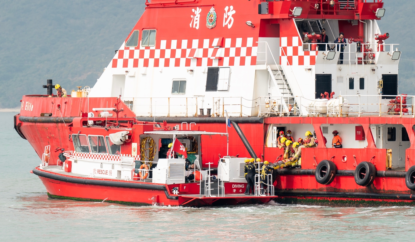 消防支援艇救起第三名墮海生還者,並移送上消防船。