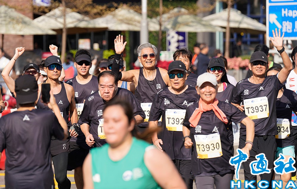 參賽選手不時向觀眾致意 影星周潤發今年參加10公里賽事。沿途不時向市民揮手致意。發哥的出現引來不少觀眾圍觀拍照,亦有跑手在社交平台分享“與發哥同跑一段”的經歷。